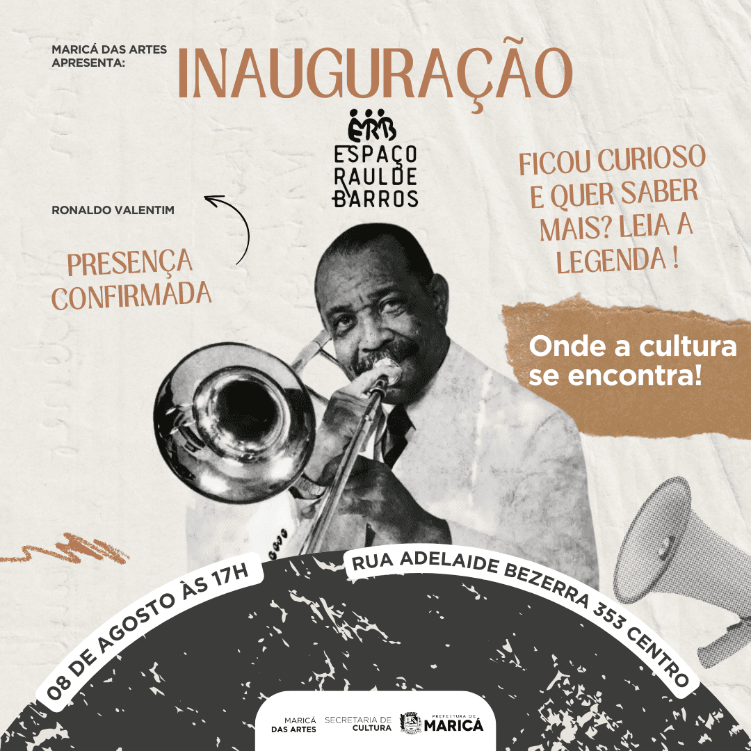 A Prefeitura de Maricá, por meio da Secretaria de Cultura, inaugura às 17h desta quinta-feira (08/08) o “Espaço Raul de Barros” do programa Maricá das Artes do polo do Centro.