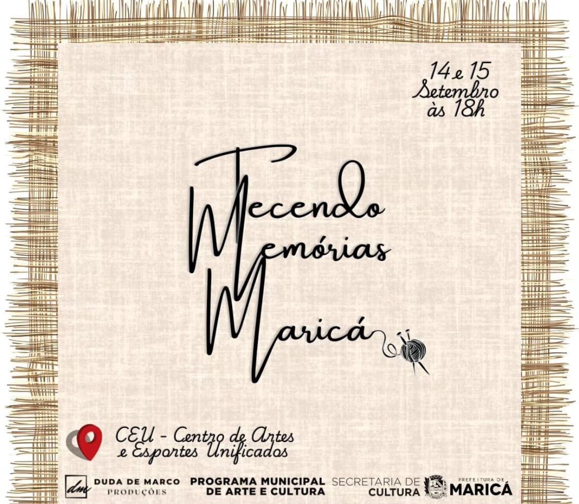 A Prefeitura de Maricá, por meio da Secretaria de Cultura, promove neste fim de semana (dias 14 e 15/09) o festival “Tecendo Memórias – Maricá”, no Centro de Artes e Esportes Unificados (CEU), na Mumbuca. O evento que integra o Programa Municipal de Arte e Cultura acontece às 18h e contará histórias da cidade, além de apresentar falas de personagens tradicionais em documentário, livro e peça teatral.