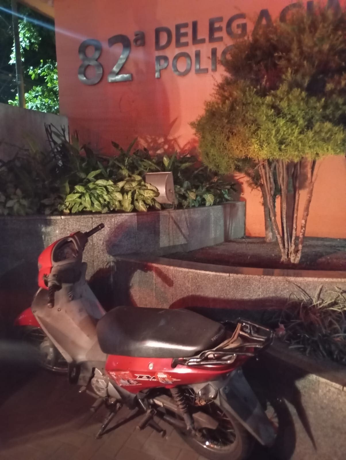 Segundo a corporação, as equipes estavam em patrulhamento quando flagraram uma motocicleta Honda Biz, cor vermelha, circulando sem placa, item obrigatório conforme previsto pelo Código de Trânsito Brasileiro (CTB). Por meio da checagem das numerações do motor e chassi, foi constatado o registro de furto do veículo.