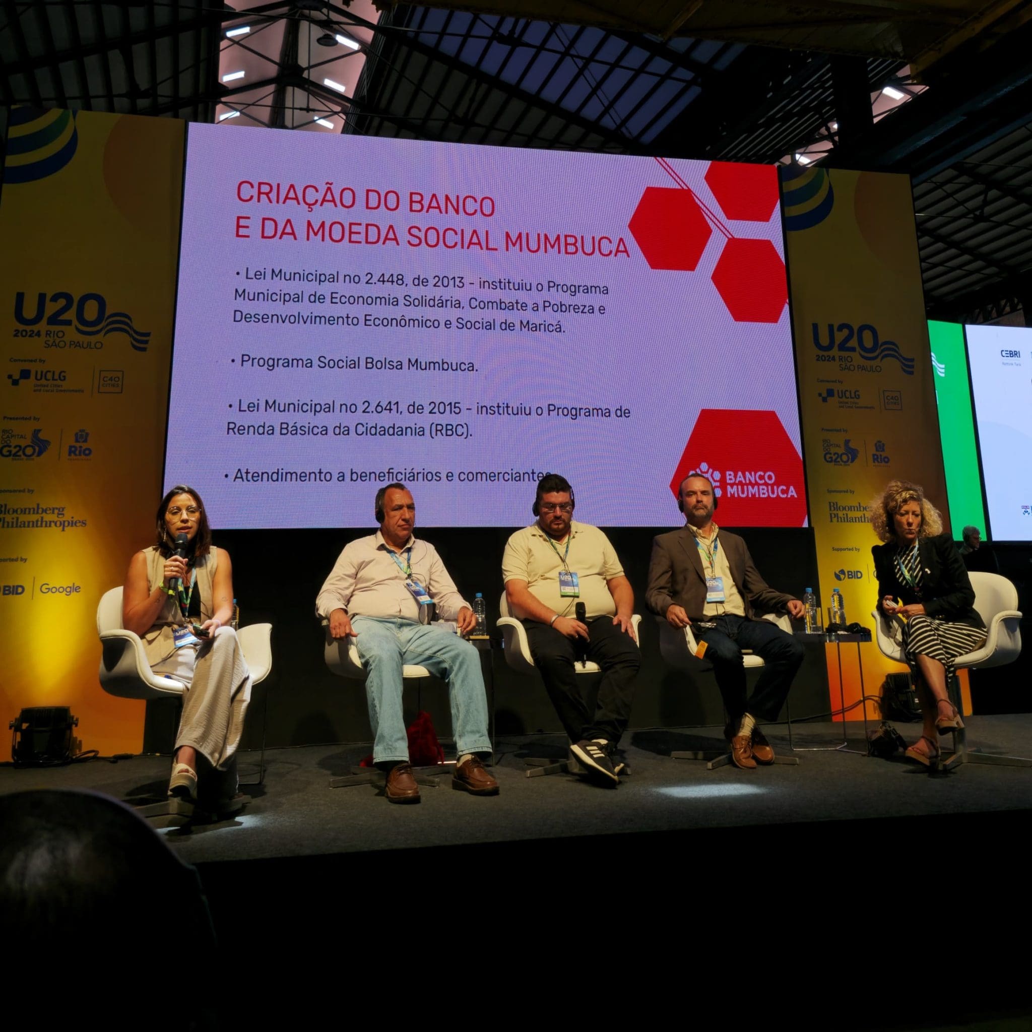 A moeda social mumbuca foi apresentada nesta sexta-feira (15/11) no G-20 Social, que pela primeira vez acontece no Rio de Janeiro e reúne chefes de estado e governo das 10 maiores economia do mundo, além da União Europeia e União Africana. Os representantes maricaenses Manuela Mello, presidente do Banco Mumbuca e Matheus Gaúcho, que representou o vice-prefeito, Diego Zeidan, participaram do painel: “Reconhecimento Internacional da Economia Social e Solidária: alavanca de chave para a criação de trabalho digno baseado nas realidades e comunidades locais”.