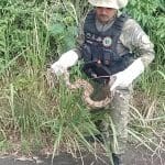Agentes do Gedam capturam jiboia e a devolvem para seu habitat natural