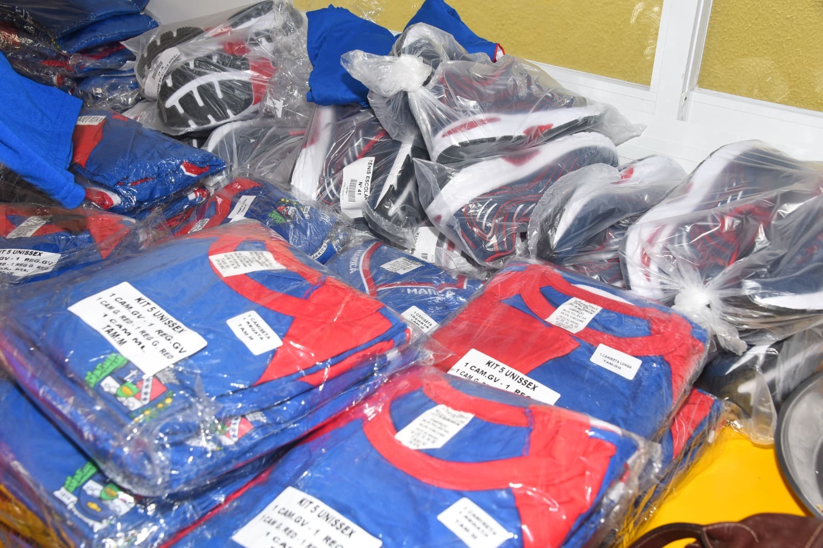 Também nesta quarta-feira, as instituições de ensino entregaram os kits escolares para os estudantes. A lista de material inclui agendas, cadernos, lápis de grafite, borrachas, tinta guache, resma de papel, pasta, massinha de modelar, régua e estojo. Além disso, os alunos também recebem caixas de lápis de cor, livros didáticos e paradidáticos, e mochilas, compondo um conjunto educacional completo. Os alunos também estão recebendo vestuário que contempla sandálias tipo crocs, meia sola para a Educação Infantil e tênis para todos os alunos (modelo feminino e masculino), além das peças tradicionais, como blusa, mochila e bermuda.
