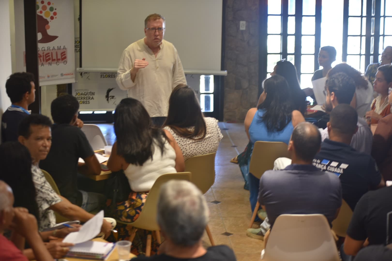 Na primeira sessão, na sede do Programa Marielle Franco, o tema foi “o pensamento crítico e direitos humanos”, ministrado pelo professor Manuel Gándara Carballido. Entre os presentes, o secretário de Direitos Humanos de Maricá, João Carlos de Lima “Birigu”, e o subsecretário de Segurança Cidadã de Marica/RJ, João Damasceno, deram boas-vindas à turma composta por servidores municipais. Foram propostas dinâmicas e interações a fim de levar os participantes a reflexões ligadas ao dia a dia de Maricá.